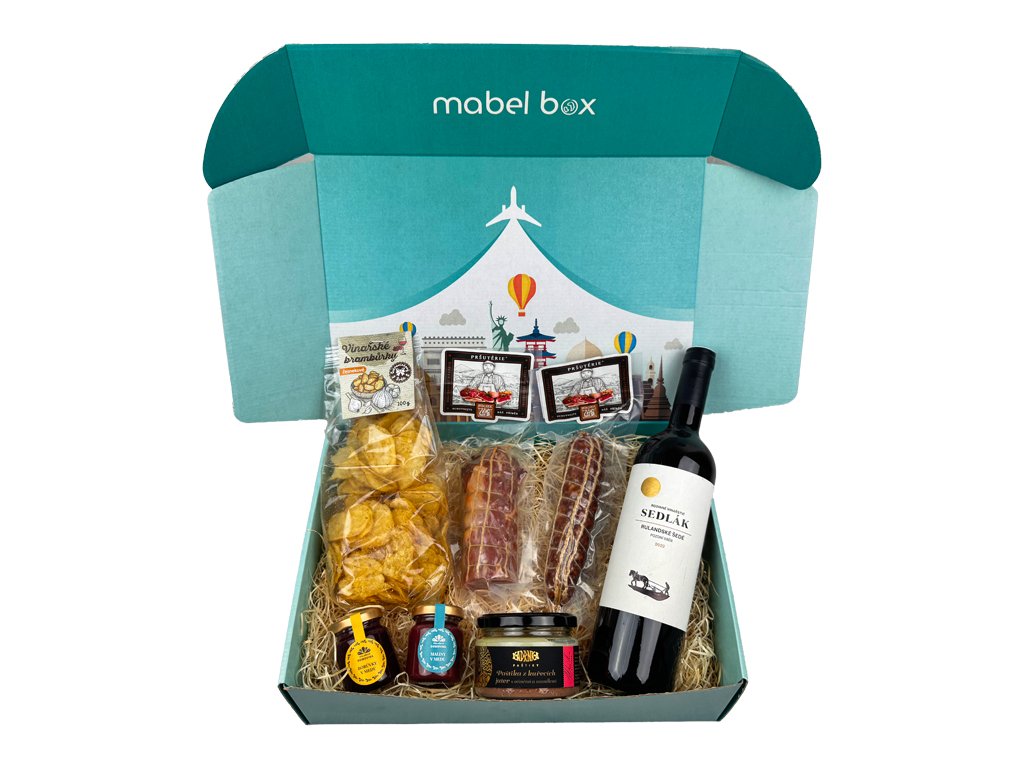 Tento pečlivě sestavený dárkový box obsahuje vybrané lahůdky a kvalitní víno, které potěší všechny gurmány a milovníky českých specialit. Ideální pro slavnostní příležitosti nebo jako výjimečný dárek.